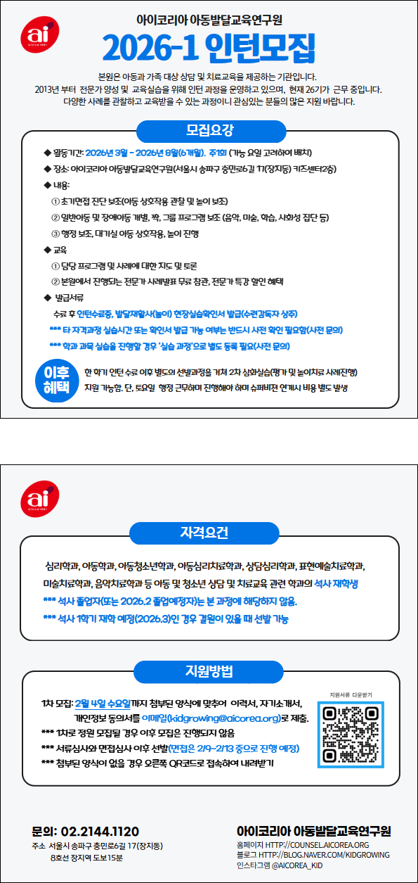 본원에서 다양한 사례를 관찰하고 교육받을 수 있는 인턴 과정 26기를 모집합니다.